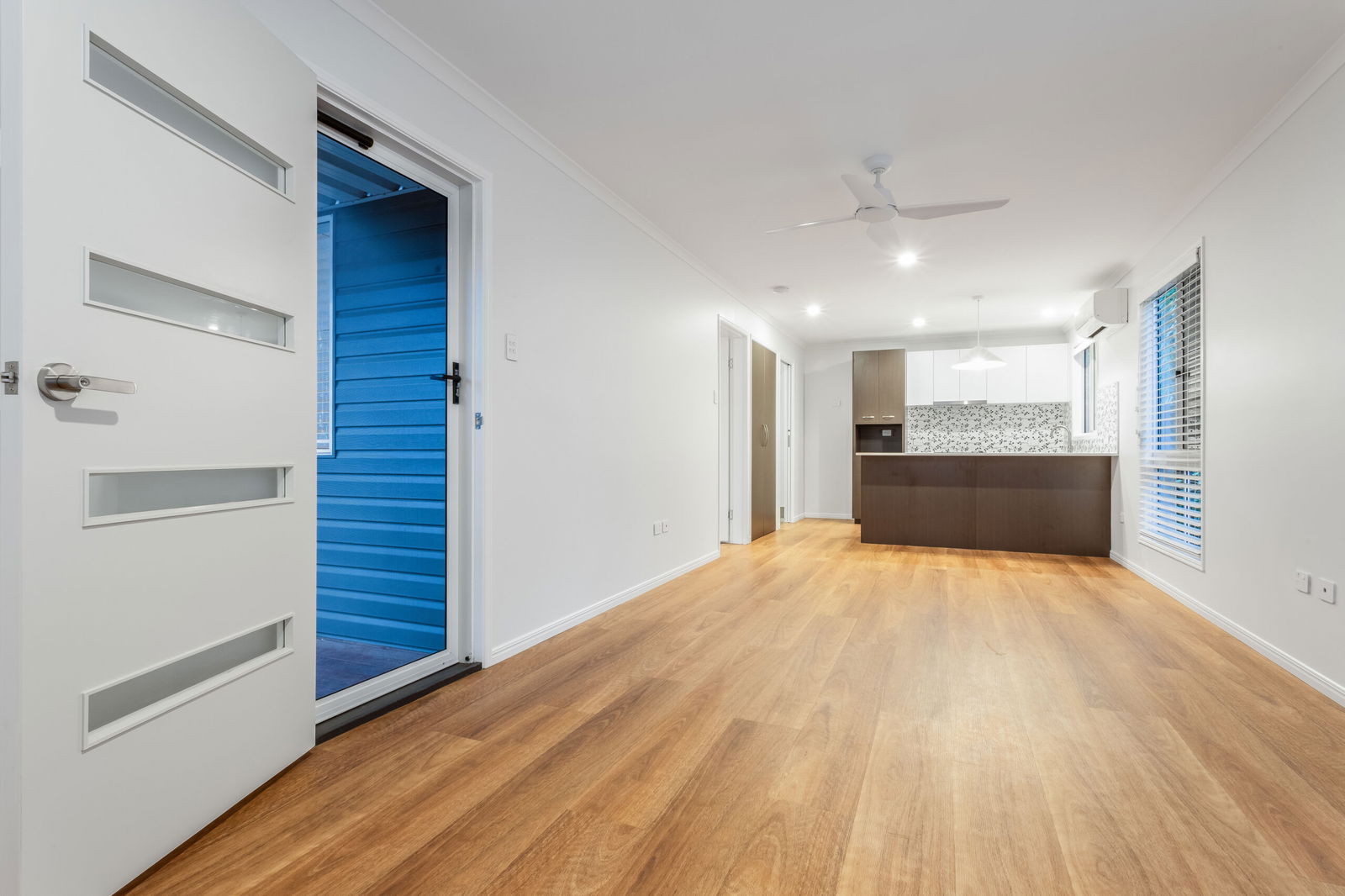 – Spacious open-plan living with modern kitchen, air-conditioning and plantation shutters