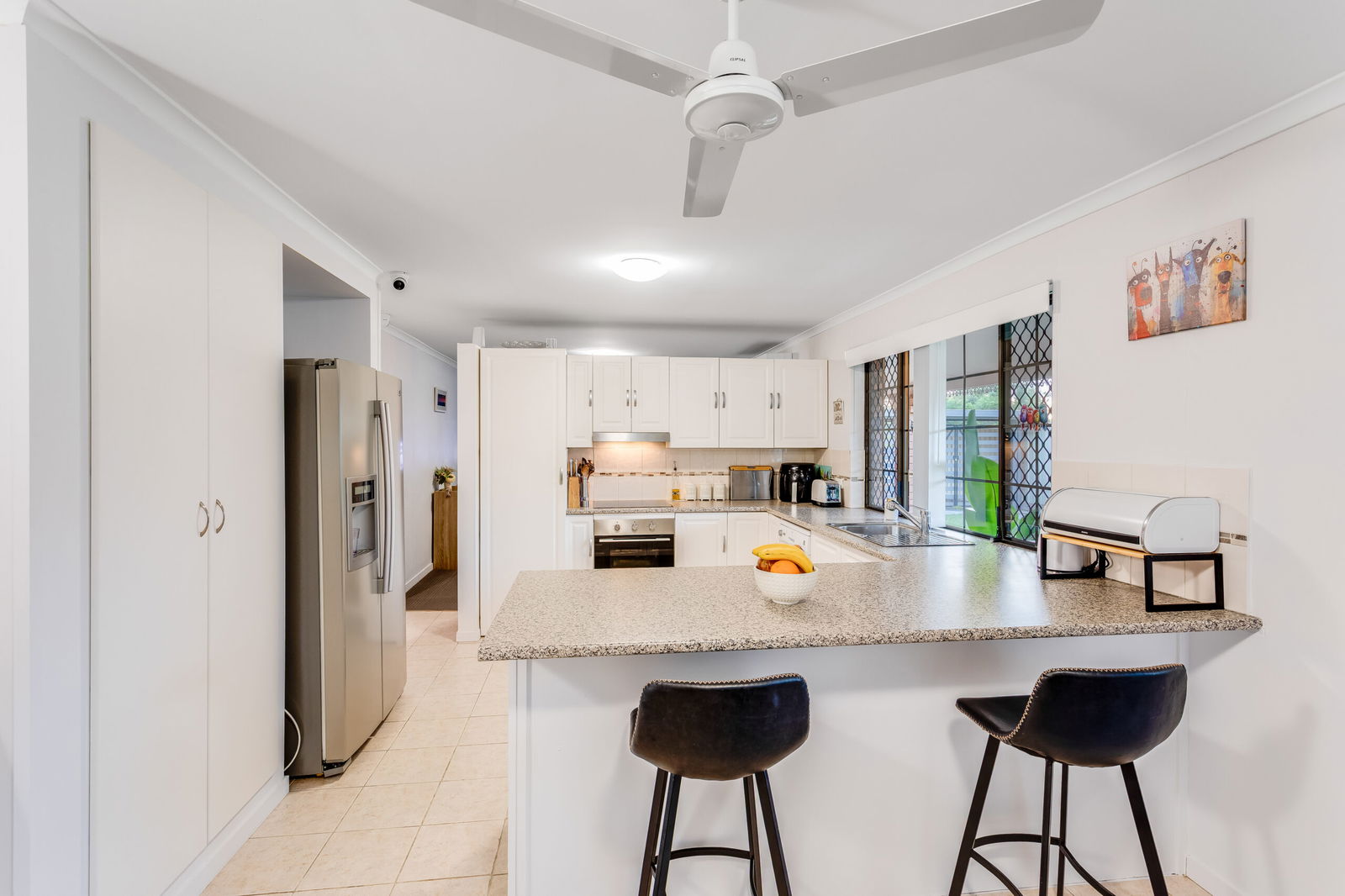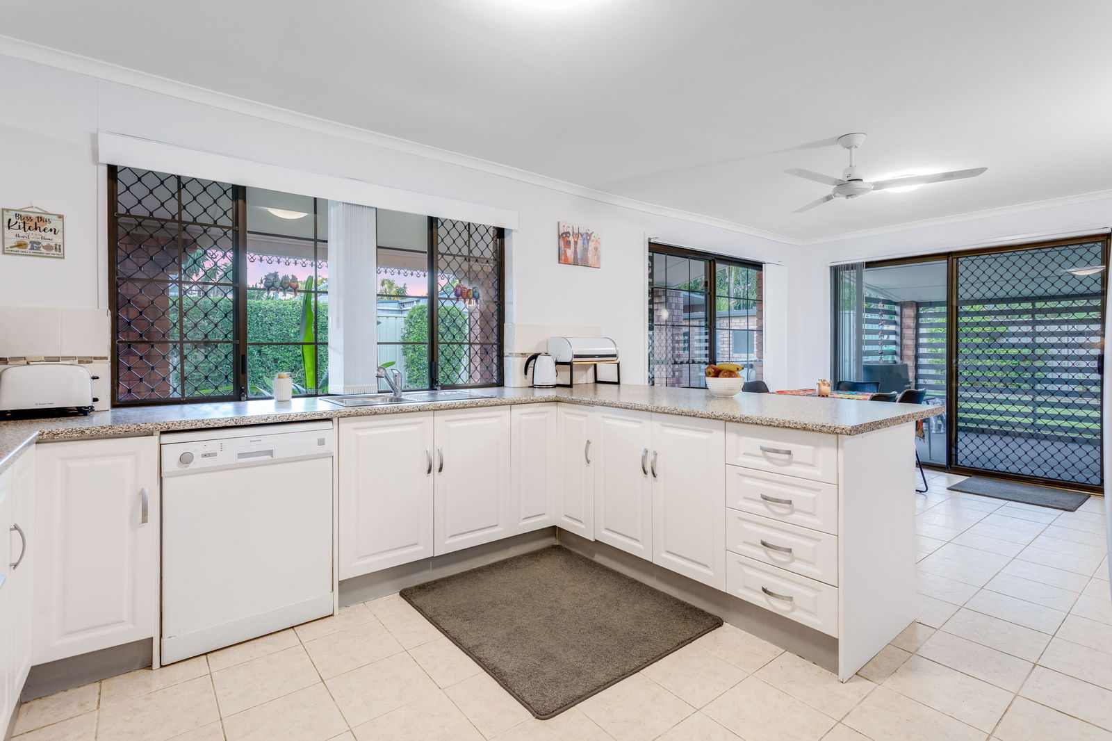 – Renovated kitchen with plenty of storage, bench space, breakfast bar, dishwasher and modern appliances.