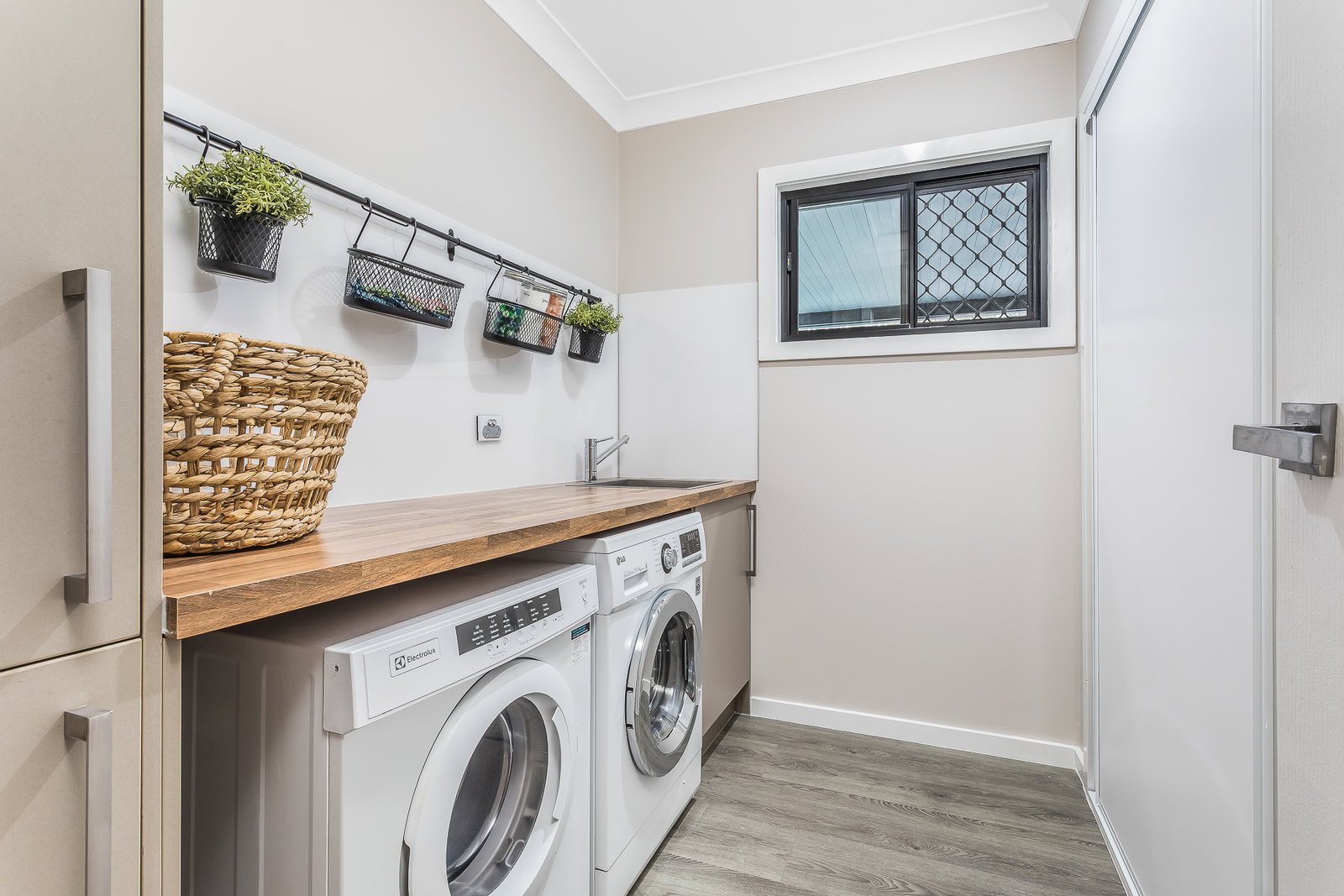 > Stylish bathroom & laundry: