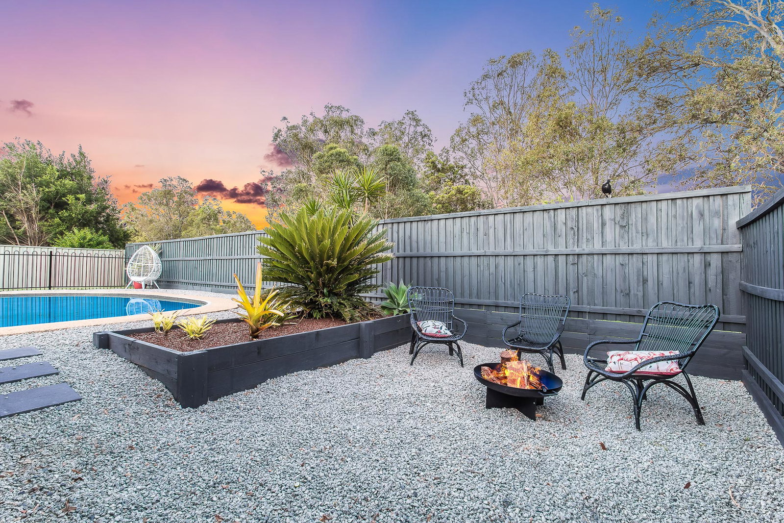 – Secluded seating area perfect for cooking on an open flame fire pit.
