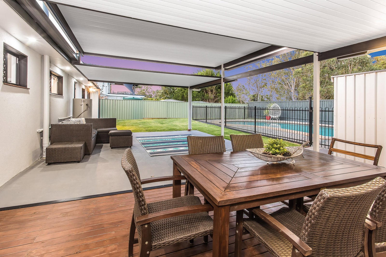 – Large rear covered area perfect for entertaining.