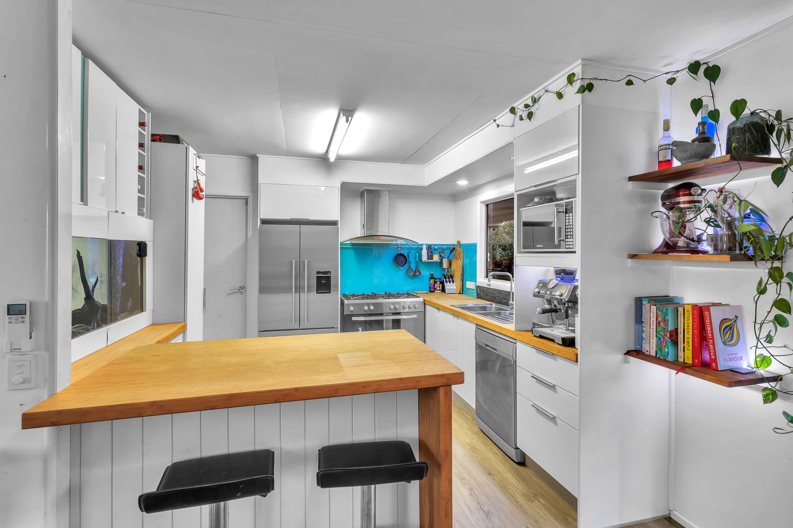 Heading upstairs, you will discover a spacious open-plan lounge and dining area. The modern kitchen offers plenty of storage and boasts a huge dual-fuel oven, as well as a servery window to the rear deck. A new WI-FI enabled air-conditioning system also ensures that you are warm in winter and cool in summer!