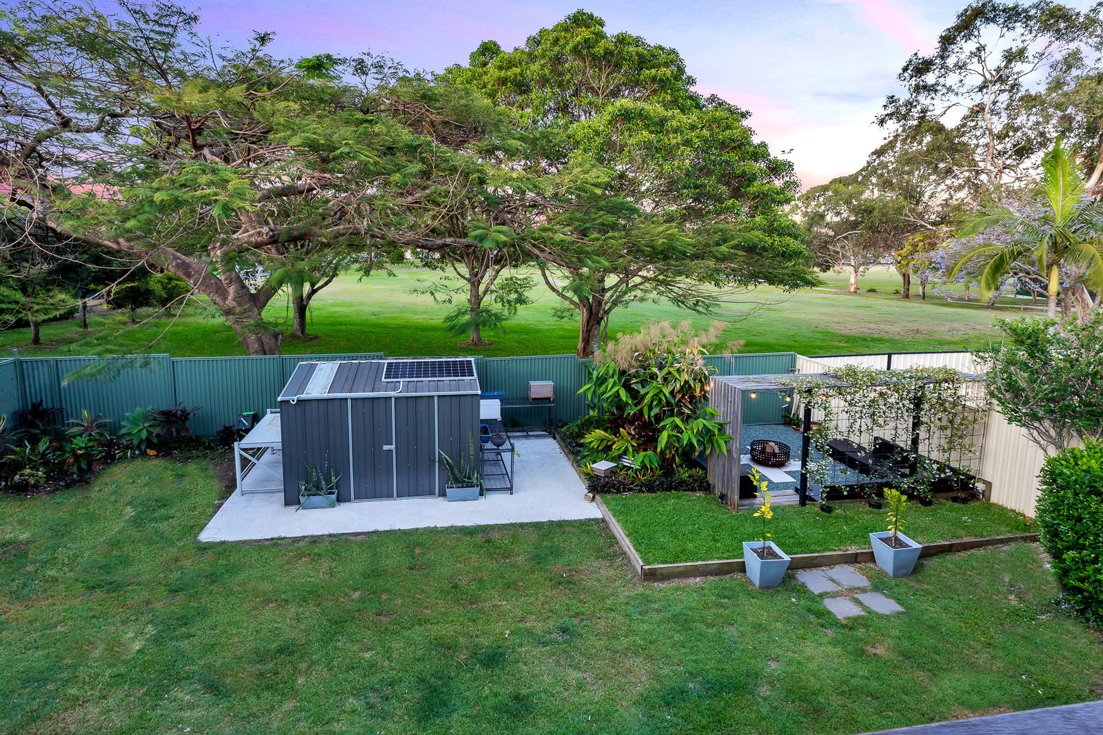 Heading outside, you are greeted with a landscaped yard, fire pit, covered entertaining area and fully fenced yard with direct access to the park – what more could you ask for?