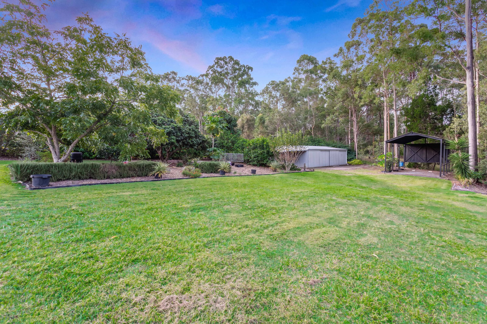 Outside, the property offers everything you need for acreage living. There is a large shed at the rear, additional covered parking, and high-clearance space for a caravan or boat. The grounds are well-maintained and usable, with plenty of open lawn space, while practical features such as solar power, solar hot water, water tanks, and mains water ensure the home is as functional as it is beautiful.