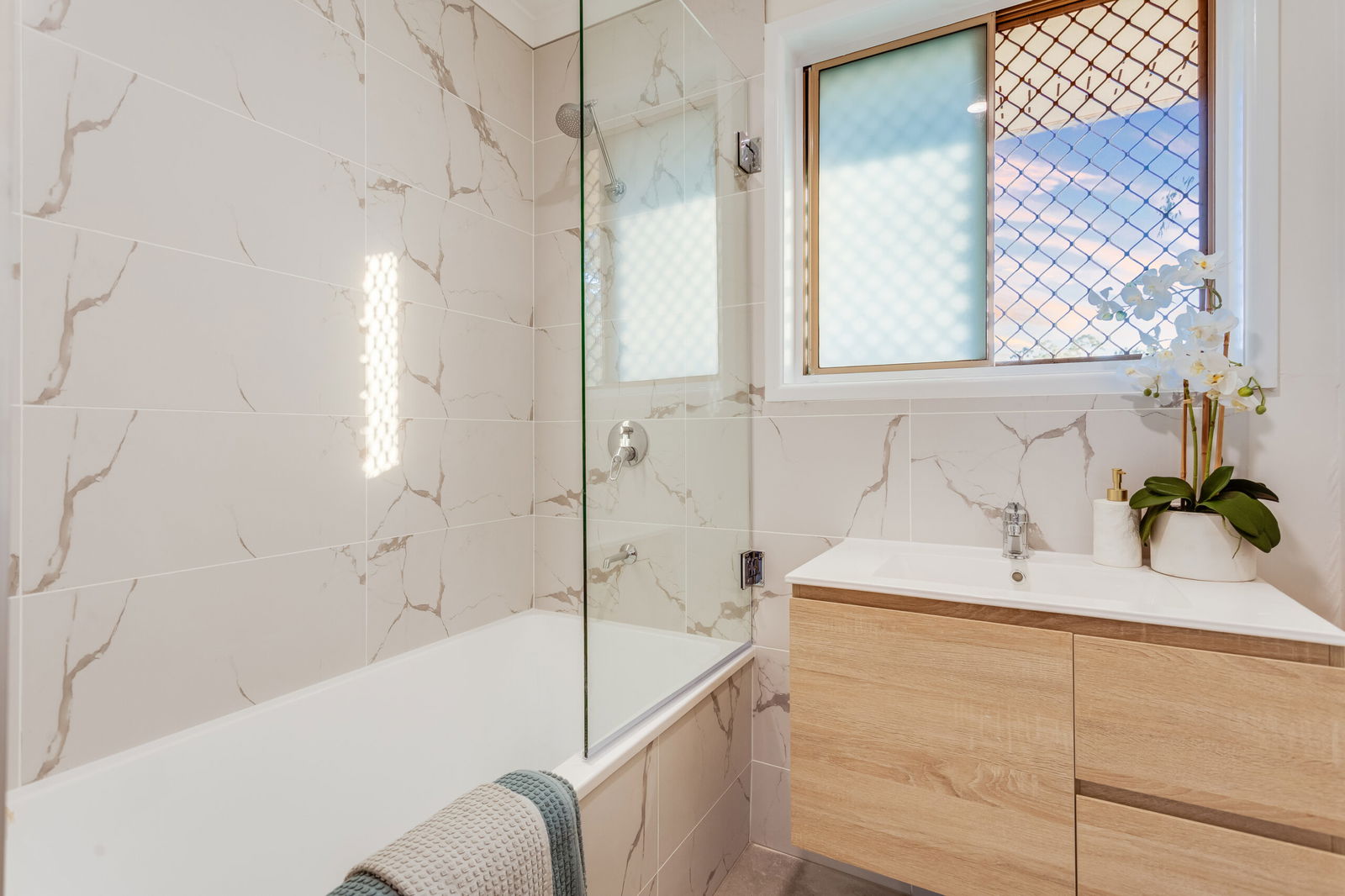 – Stylish, modern bathroom fitted with quality fixtures